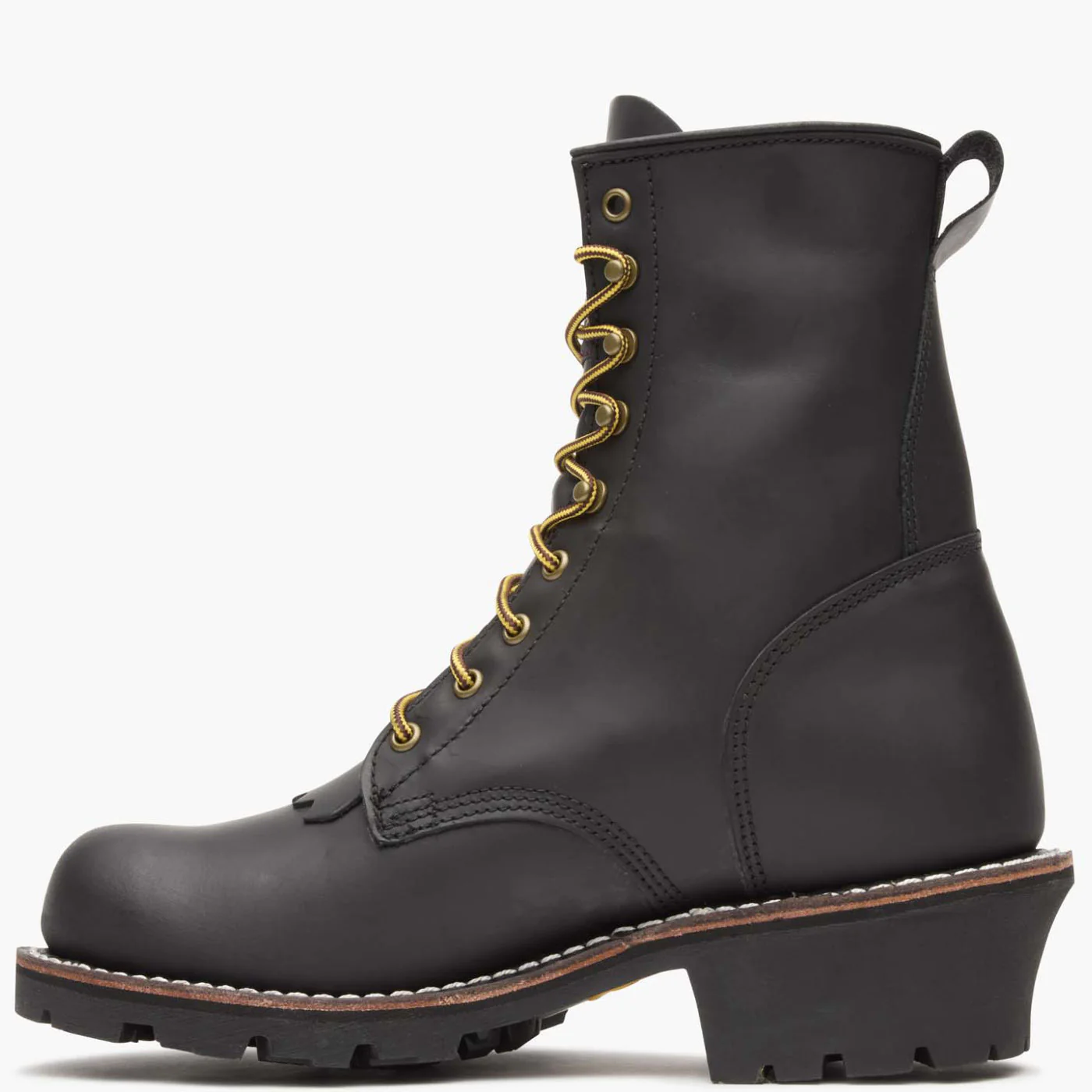 This 8-inch boot is crafted in full-grain leather with a Goodyear Welt construction for added durability. It is unlined, features an AMP X-Lite footbed, and has a genuine leather welt. The outsole on this black boot is Vibram with oil and heat-resistant rubber lugs. It is equipped with a steel shank and milled brass hardware.The brush guard kiltie is removeable and the boot comes with an additional set of black laces. This boot meets the ASTM 2892 electrical hazard standards for soft-toe boots.